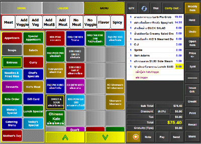 SuperMenu POS offers multi-lingual operation. You can display1 language or both languages in the order screen, and 1 language or both languages sent to the kitchen printer or KDS.