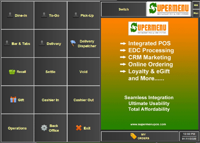 SuperMenu EDC Software - LEARN MORE ABOUT EDC We have all the major card processors available to work with SuperMenu POS. Then we offer powerful CRM marketing options, and state of the art online transactions, all designed by us in-house. SuperMenu has a variety of affordable Point of Sale software solutions for restaurants of all sizes. We can help restaurants with all Point of Sale needs plus much more. If you are a merchant service company needing the right restaurant POS software to process credit card transactions. Please contact us, we can interface to your processing partners.